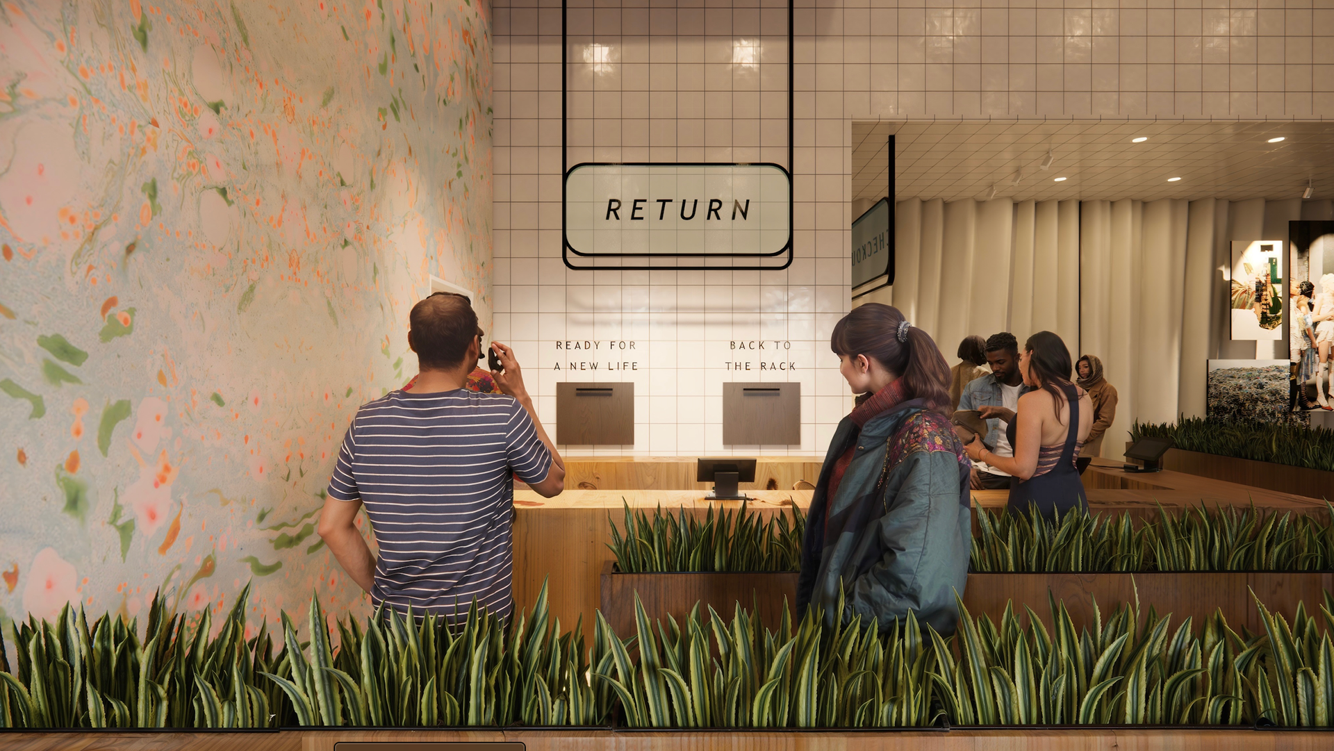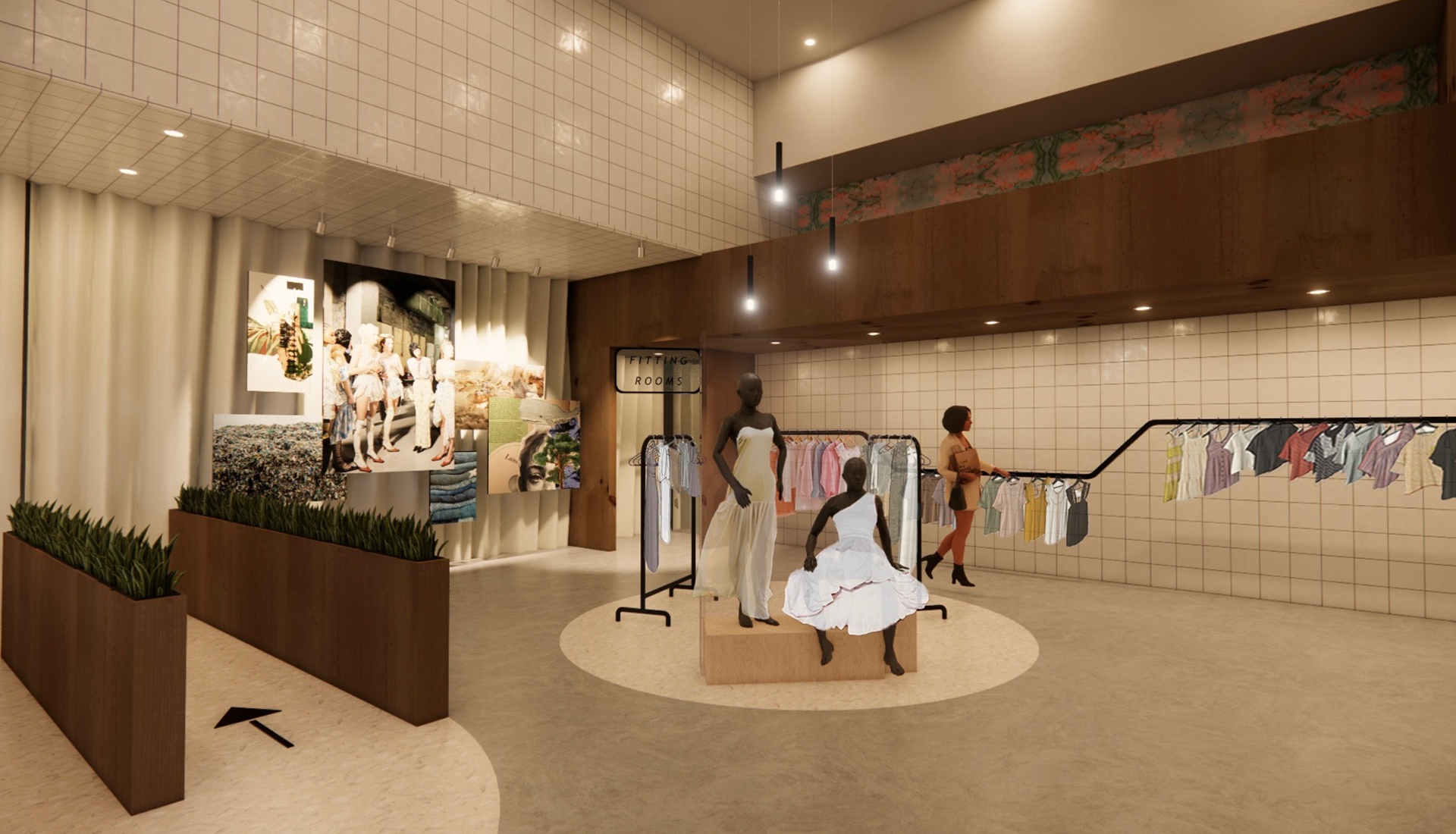 Georgia rendered a storefront in Revit dedicated to in-person returns and the reselling of returned products, reducing landfill waste and minimizing the emissions and packaging associated with shipping returns.