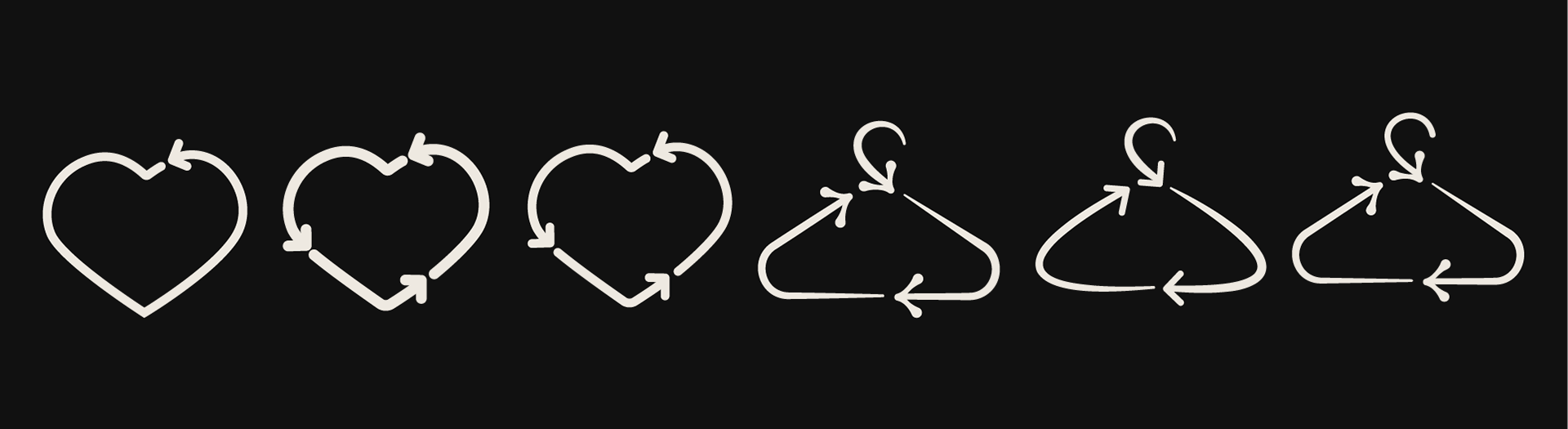 Initially I had the idea of using the classic heart icon to represent your "likes" also being sustainable, but the form didn't fit the look of the typography. I moved onto a hanger icon and loved the way its shape worked with the elegant type. Then I experimented with different stroke styles and found one I loved!