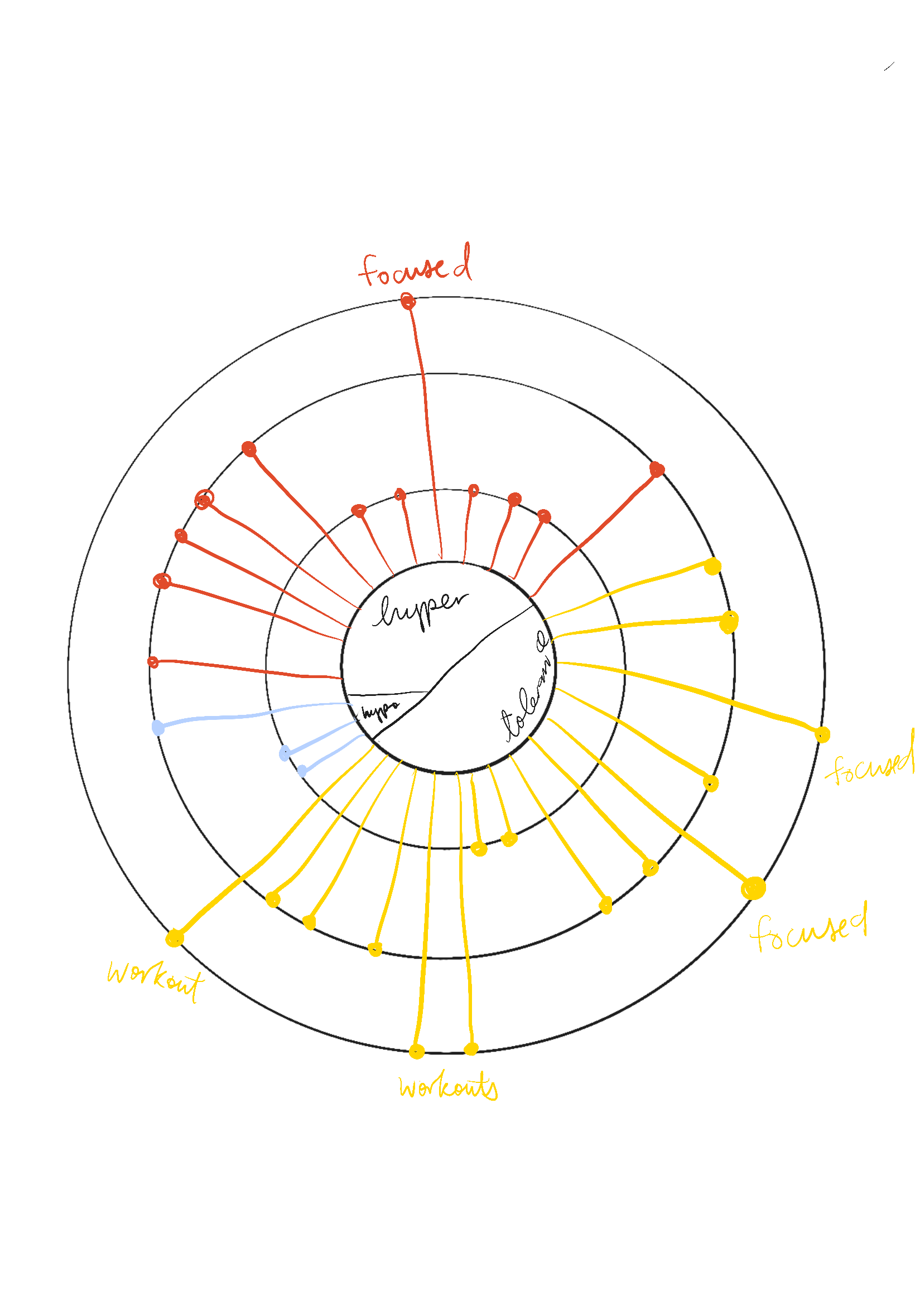 When I sketched visualizations of this theory, there was a strong pull toward higher difficulty tasks when I encountered a mood within the "window of tolerance", which is where the body feels safe, with just the right amount of energy. This narrative emerged to me when I made a sunburst diagram, so this was the final model I used.